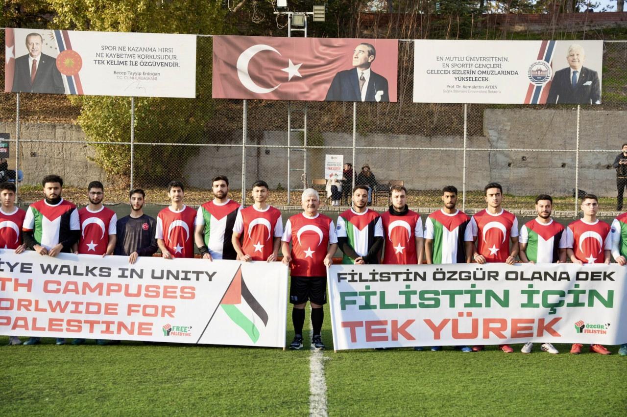 Türkiye’de eğitim gören Gazzeli üniversite öğrencileri ile Sağlık Bilimleri Üniversitesi yönetici ve öğrencilerinden oluşan takım, Gülhane Yerleşkesi’nde anlamı sahayı aşan bir dostluk maçında karşı karşıya geldi.