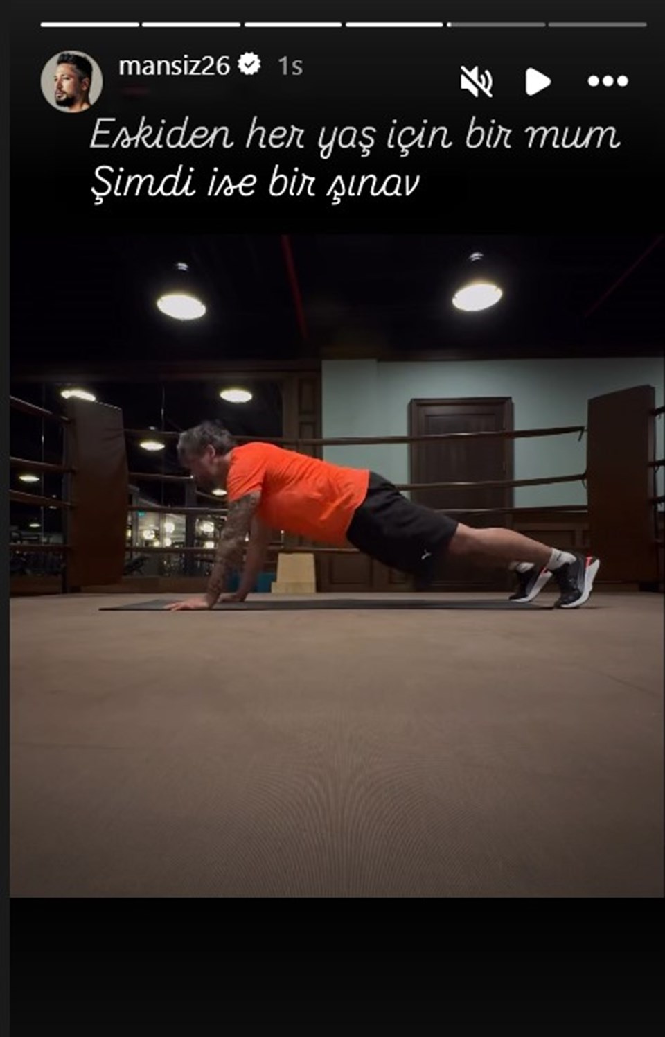 Doğum gününde de sporu aksatmayan ünlü isim, şınav çektiği anları takipçileriyle paylaştı. Bir çocuk babası Mansız, spor videosuna “Eskiden her yaş için bir mum şimdi ise bir şınav” notunu düştü.