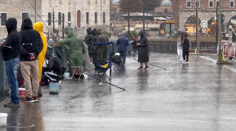 Toplu taşımayı kullananlar ise duraklarda ve iskelelerde yağmurdan korunmaya çalıştı. Bazı kişiler başlarına tuttukları giysi ve çantalarıyla yağmurdan korunurken, Galata Köprüsü’nde yağışa rağmen balık tutan vatandaşlar dikkati çekti.