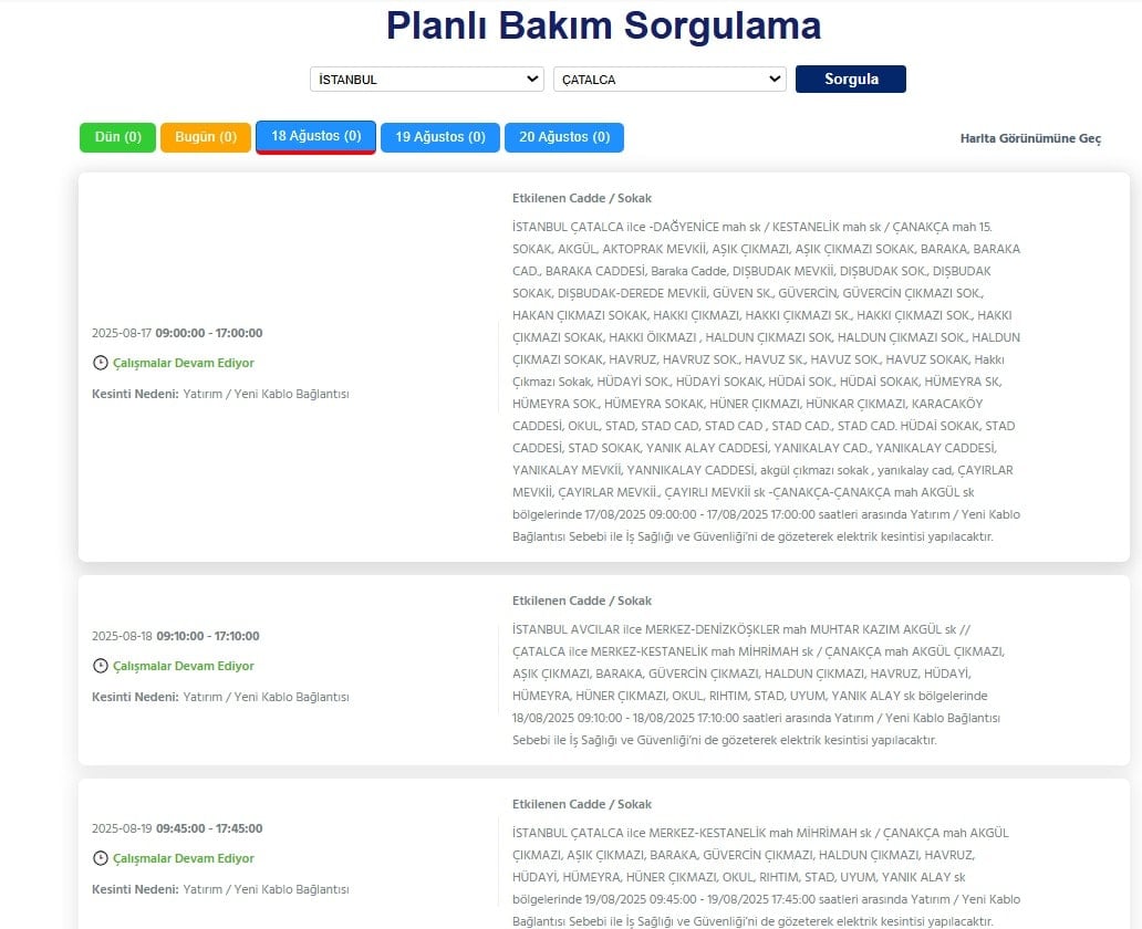 BEDAŞ’tan yapılan açıklamaya göre 18 Ağustos Pazartesi günü İstanbul’un 25 ilçesinde elektrik kesintisi yaşanacak. İşte milyonlarca kişiyi etkileyecek saat saat elektrik kesintileri…