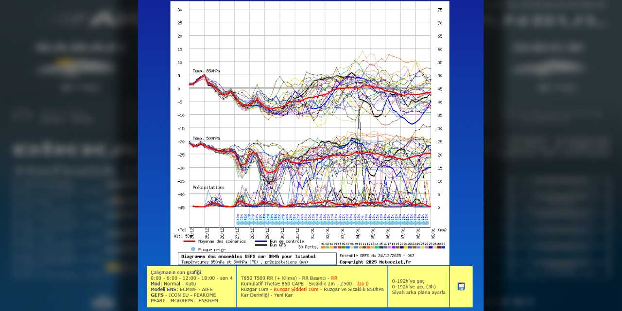“30 Aralık-31 Aralık ve 1 Ocak’a sarkan günlerde Batı bölgelerinde kar yağışının mümkün olacağını görüyoruz. Bu kesin değil. Daha bir haftadan fazla var. Dolayısıyla yüzde 50’lik bir ihtimal vardı bu yüzde 60’a çıktı esasında.