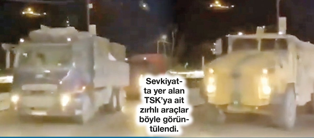 TürkSilahlı Kuvvetleri’nin (TSK) dün Afrin, Rasulayn ve Halep’in kuzeyinden Suriye’ye giriş yaptığı görüntüler ortaya çıktı. Mehmetçiğin konvoyunun Münbiç hattına doğru ilerlediği belirtilirken, Şam yönetimi de eş zamanlı olarak terör örgütü PKK’nın Suriye uzantısı SDG’nin kontrolündeki Deyrizor’a ek birlikler gönderdi. Bölgeden aktarılan bilgilere göre TSK zırhlı araçları, Münbiç hattına doğru ilerliyor. Konvoyların Deyr Ballut ve Advaniyah sınır kapılarından gece saatlerinde Suriye topraklarına girdiği ifade edildi.