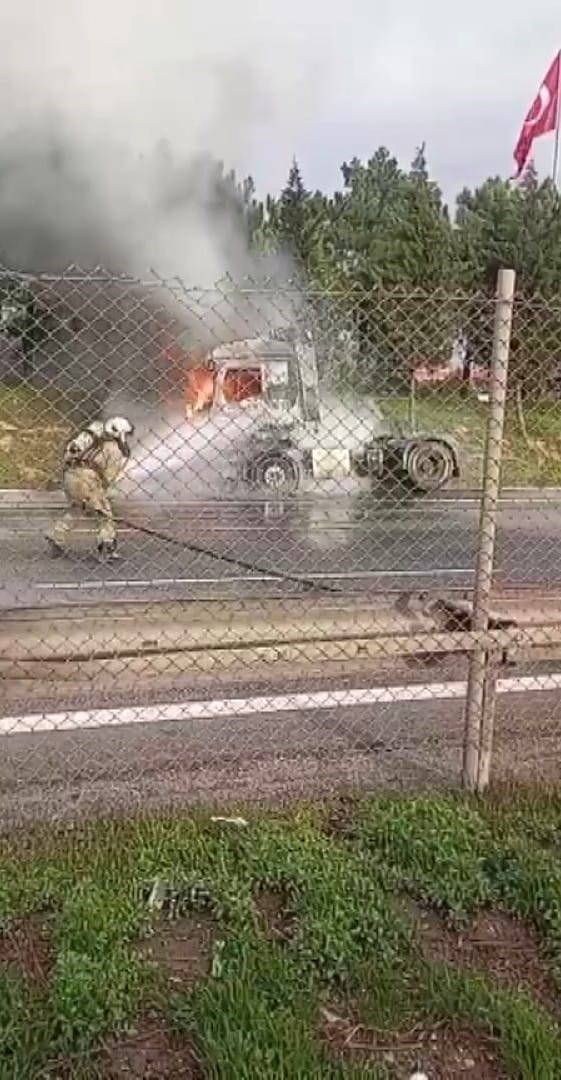Seyir halindeki dorsesiz TIR alev topuna döndü