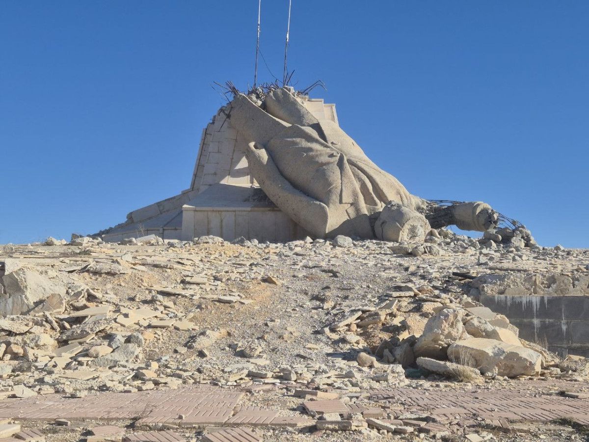Suriye’de Aralık 2024’te gerçekleşen tarihi devrimde halk tarafından devrilen Hafız Esad’ın ülkedeki en büyük heykeli hale devrik halde bulunuyor.